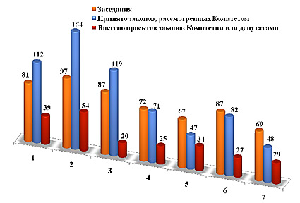 Комитет по законности и правопорядку провел 97 заседаний, в том числе 5 выездных, рассмотрел 1022 вопроса, включая 54 контрольных.