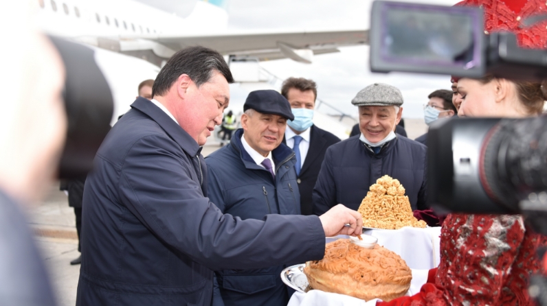В Татарстан с рабочим визитом прибыл Премьер-министр Республики Казахстан Аскар Мамин. В международном аэропорту «Казань» его встретили Президент Республики Татарстан Рустам Минниханов, Председатель Государственного Совета Республики Татарстан Фарид Мухаметшин и мэр Казани Ильсур Метшин.