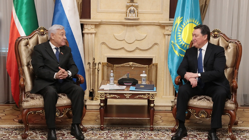 Сегодня в рамках визита парламентской делегации Татарстана в Казахстан состоялась официальная встреча Председателя Государственного Совета Фарида Мухаметшина с Премьер-министром Казахстана Аскаром Маминым. Стороны обсудили вопросы развития торгово-экономического, научно-технического и культурно-гуманитарного сотрудничества.
