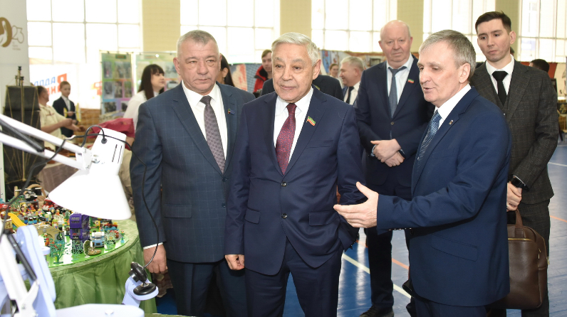 Рабочая поездка главы парламента началась с посещения Болгарской средней общеобразовательной школы №1 с углубленным изучением отдельных предметов. В прошлом году в трехэтажном здании, построенном 50 лет назад, был проведен капитальный ремонт. Обновлены фасад и крыльцо, построен новый пандус, оборудована комната охраны, отремонтированы кабинеты, столовая и спортзал, актовый зал. По федеральной программе «Точка роста» закуплено новое оборудование для кабинетов химии, биологии и физики.