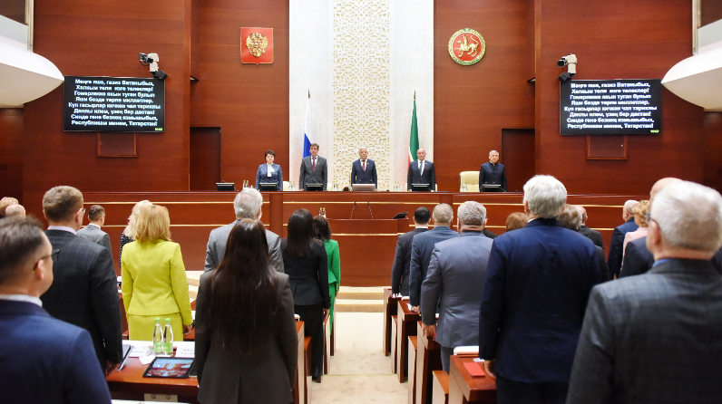 В работе сессии принимают участие Раис Республики Татарстан Рустам Минниханов, члены Правительства республики и приглашенные.
