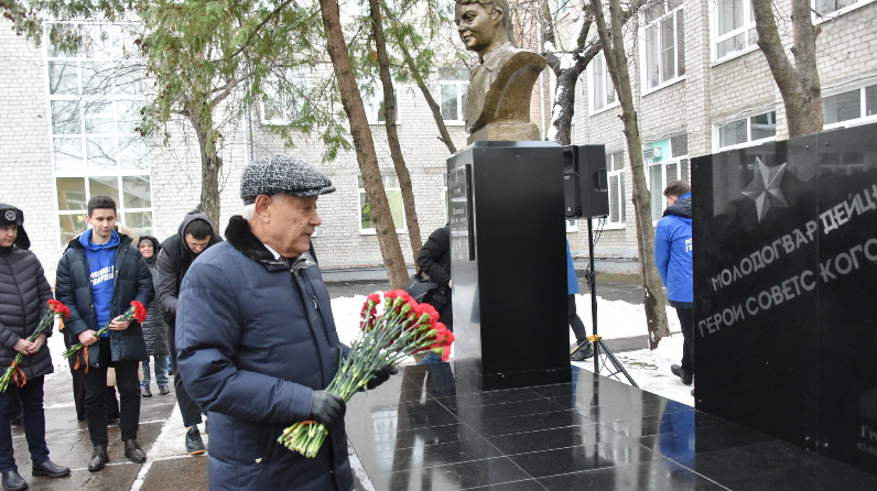 Бюст Героя Советского Союза Олега Кошевого, одного из предводителей подпольной антифашисткой организации «Молодая гвардия» на территории школьного двора был открыт в 80-ых годах прошлого века. Нынешние их последователи – представители молодежного крыла партии «Единая Россия» на средства гранта не только восстановили сам бюст, но и создали целый мемориал, увековечив в граните 5 портретов молодогвардейцев Героев Советского Союза: Ульяны Громовой, Любови Шевцовой, Сергея Тюленина, Ивана Земнухова и Ивана Туркенича, которые остались в тылу, но делали все возможное, чтобы приблизить Победу.