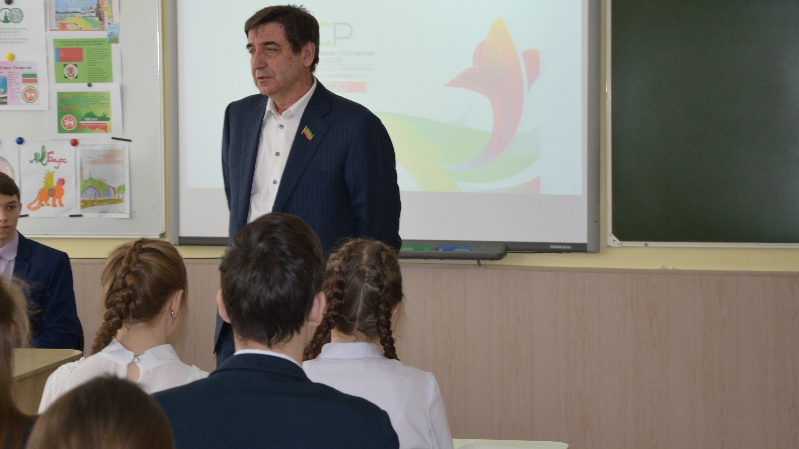 Сегодня заместитель Председателя Государственного Совета Юрий Камалтынов провел парламентский урок для учащихся 10 классов школы №7 Зеленодольска.