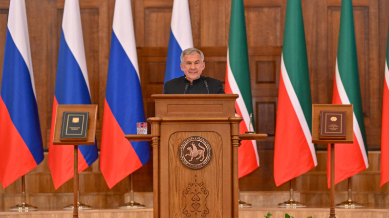 Раис Татарстана принес присягу на верность многонациональному народу республики, Конституции Российской Федерации и Конституции Республики Татарстан в присутствии руководства Правительства России, сенаторов Российской Федерации и депутатов Государственной Думы ФС РФ, глав регионов, официальных представителей субъектов ПФО, депутатов Государственного Совета РТ, членов Кабинета министров республики, представителей муниципальных образований, предприятий, организаций, учреждений республики, Героев Советского Союза и России, участников специальной военной операции, широкого круга общественности.
