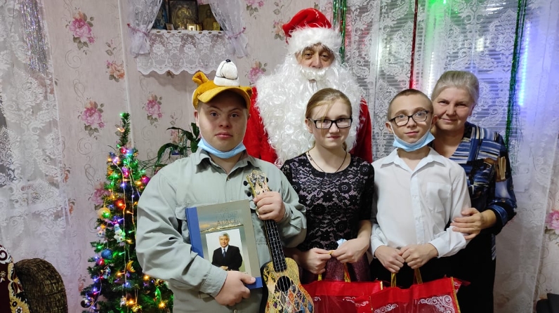 Бүләкне Дәүләт Советы Рәисе исеменнән парламент депутаты Камил Нугаев тапшырды. Парламентарий күп балалы гаиләгә кунакка (Евгениянең тагын абыйсы һәм апасы бар) Кыш Бабай костюмыннан килде. Кыш Бабайның тылсымлы капчыгында күптән көтелгән Гавай гитарасы бар иде. Ул малайны якынлашып килүче Яңа ел белән котлады һәм аңа яңа иҗади уңышлар теләде.