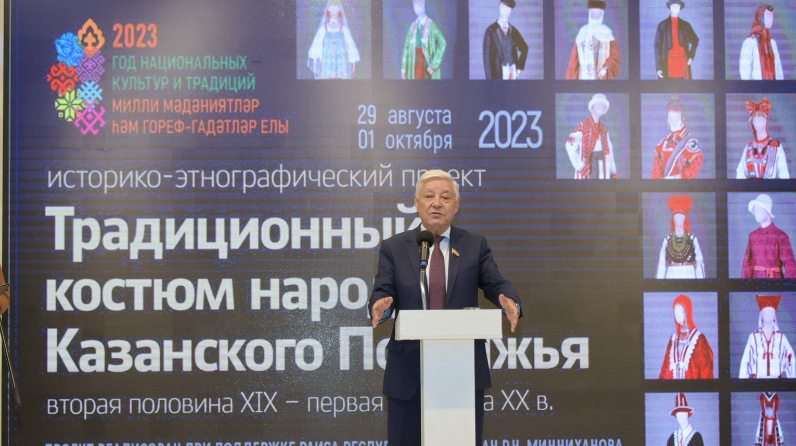 Бүген Казан Кремлендә «XIX гасырның икенче яртысында – XX гасырның беренче яртысында Казан Идел буе халыкларының традицион костюмы» тарихи – этнографик проектының презентациясе булды. Күргәзмәне ачу һәм проектны тәкъдир итү тантанасында Дәүләт Советы Рәисе, Татарстан Халыклары ассамблеясе Советы Рәисе Фәрит Мөхәммәтшин катнашты.