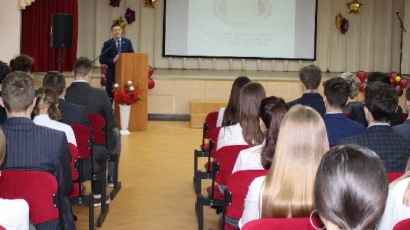 ТР Дәүләт Советы депутаты Ринат Шәфигуллин укучыларга ТАССРның  оештырылу тарихы һәм үсеш этаплары, Татарстан тарихына үз өлешен керткән шәхесләр урында сөйләде. Депутат Бөек Ватан сугышында Җиңүнең 75 еллыгын бәйрәм итүгә аерым игътибар бирде. Ул шулай ук Дәүләт Советы һәм депутатларның эшчәнлеге турында да мәгълүмат бирде.